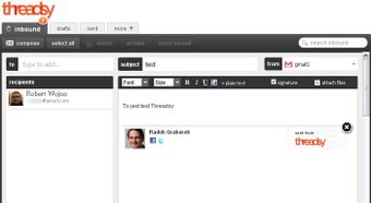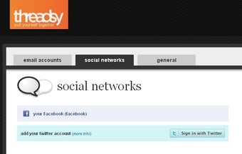 Una vez registrado en Threadsy, podrás añadir de forma muy rápida tu cuenta de Gmail (o varias cuentas de correo que utilices), tu perfil de Facebook y tu cuenta de Twitter. Una vez hecho esto, verás una bandeja de entrada común con los mensajes de los tres servicios.
